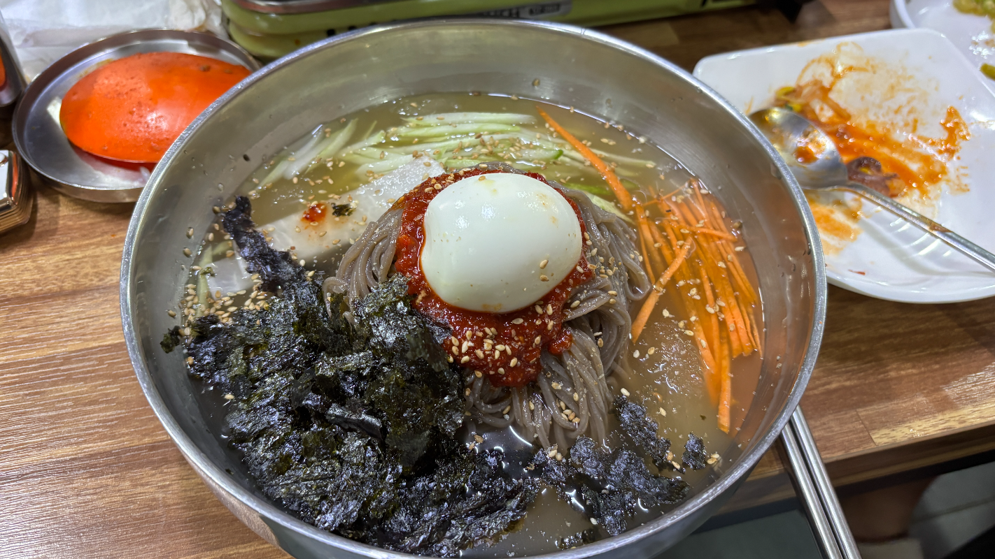 '쭈삼볶음'과 '막국수'를 먹었습니다.