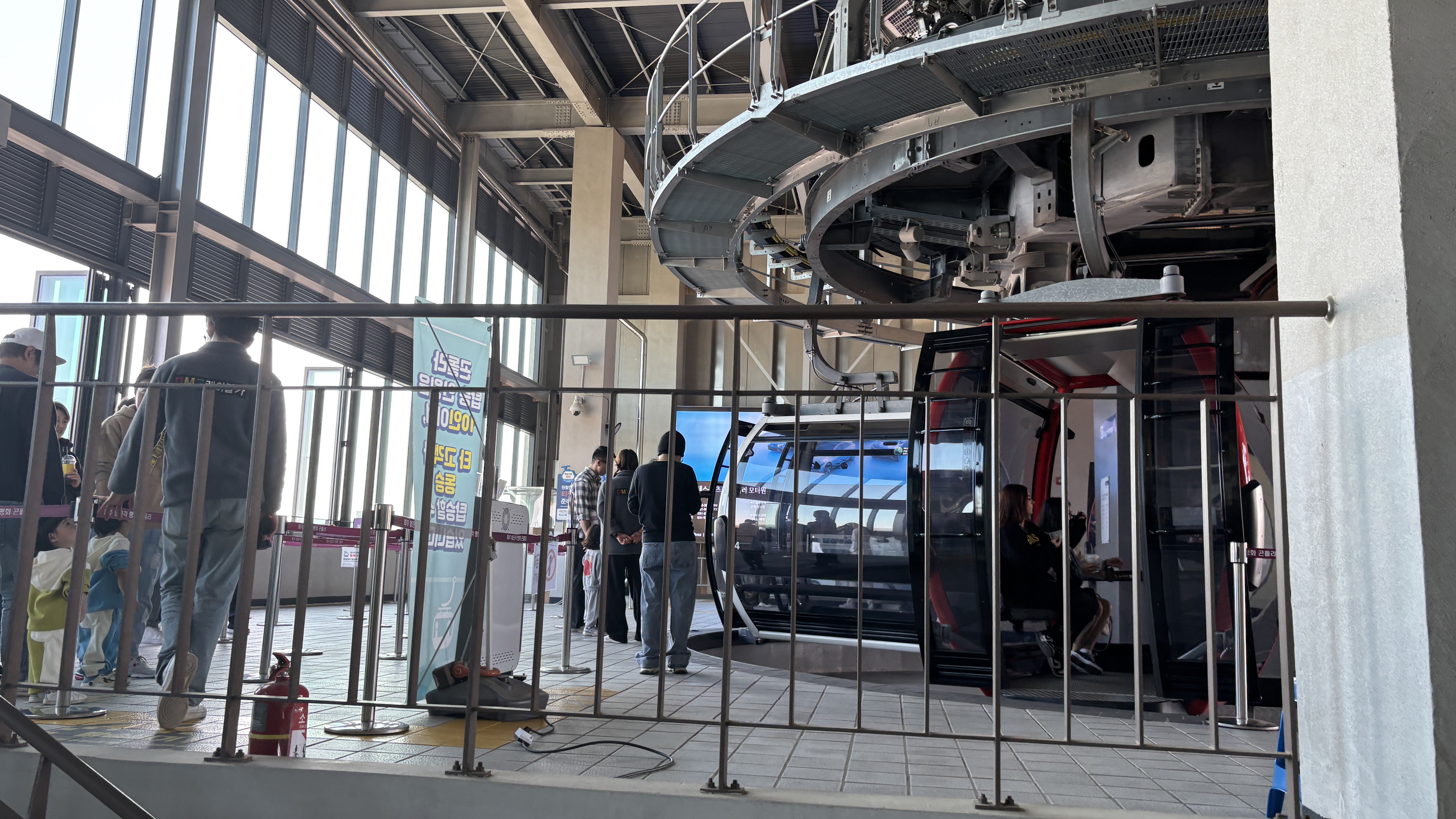 돌아가는 곤돌라를 타는 탑승장