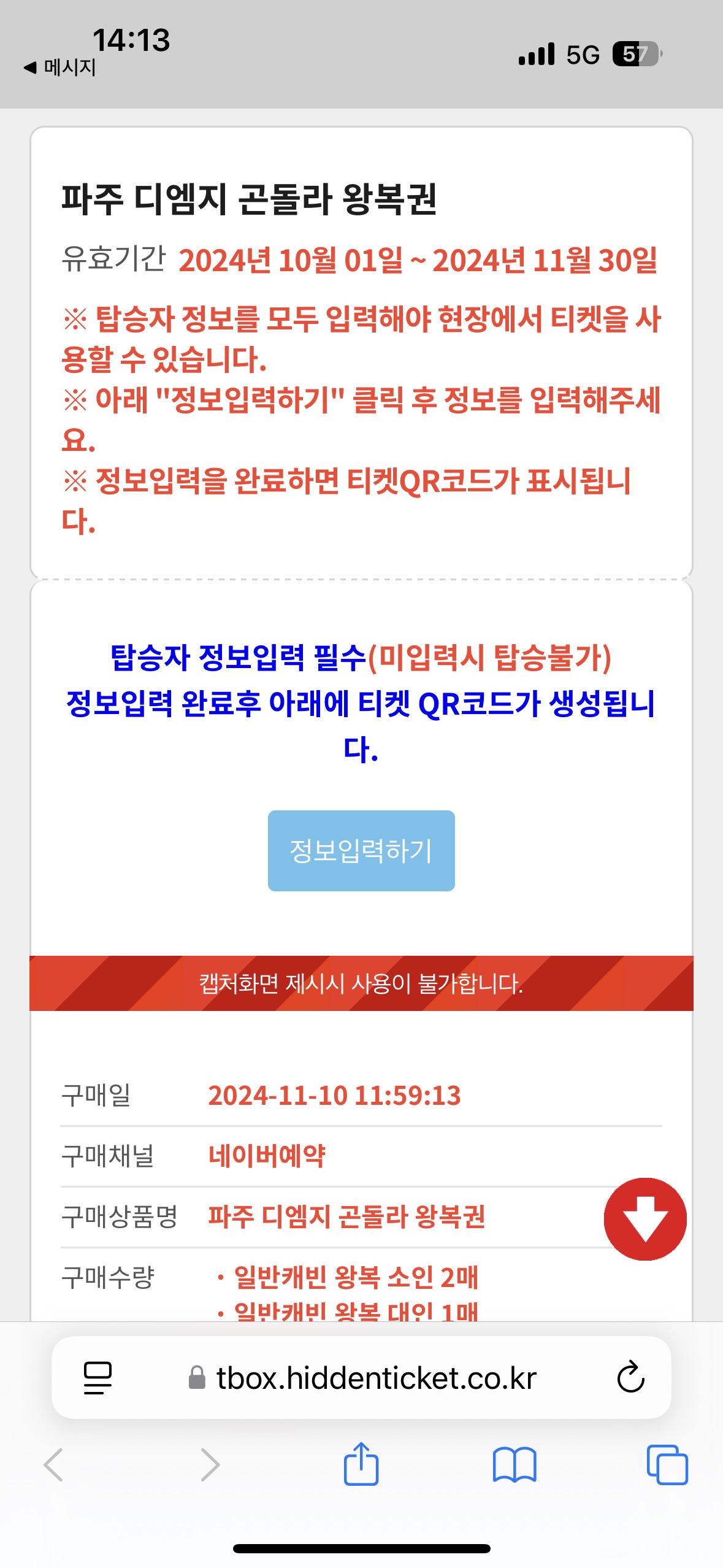 티켓 발권 전 인적사항 및