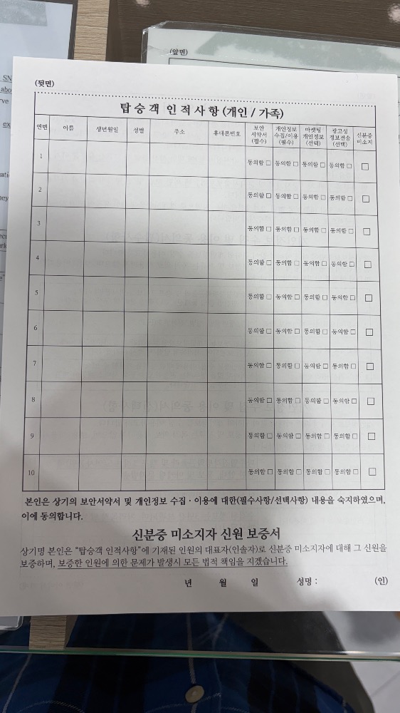 보안 서약서, 개인정보이용동의서를