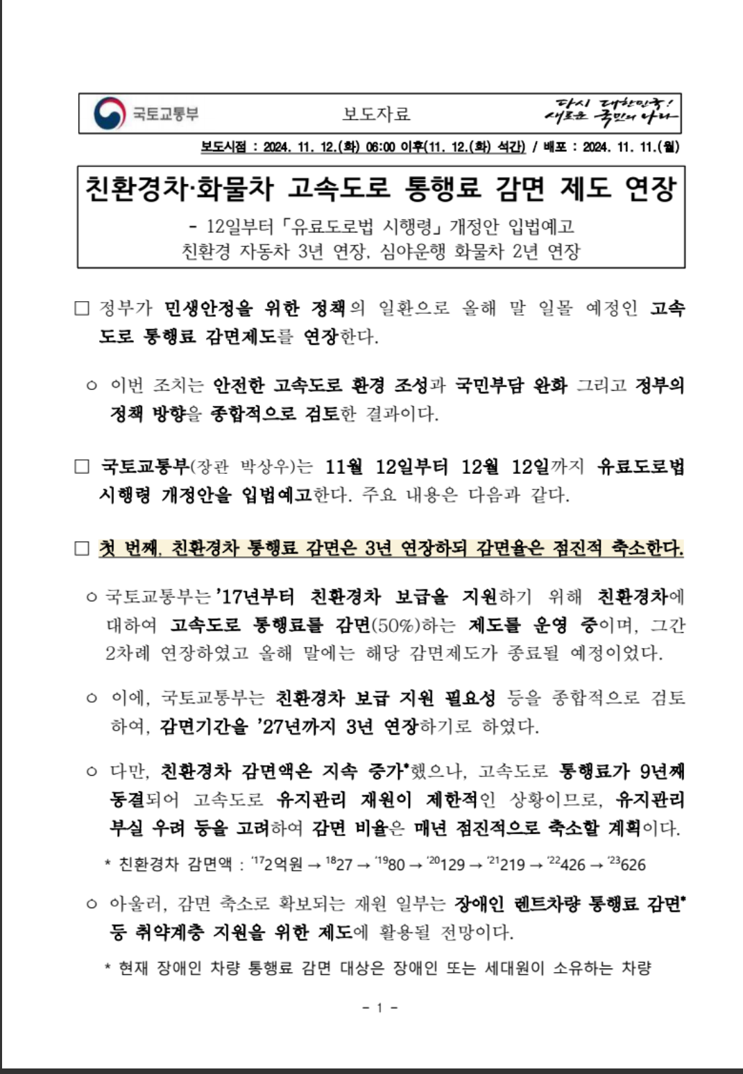 2. 전기차 고속도로 통행료 감면 연장!