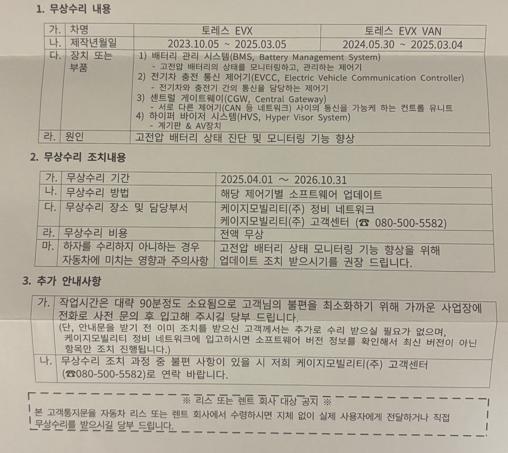 | 토레스evx 첫 정기점검 '북양주센터 방문 후기' (0) | 2025.04.13 |