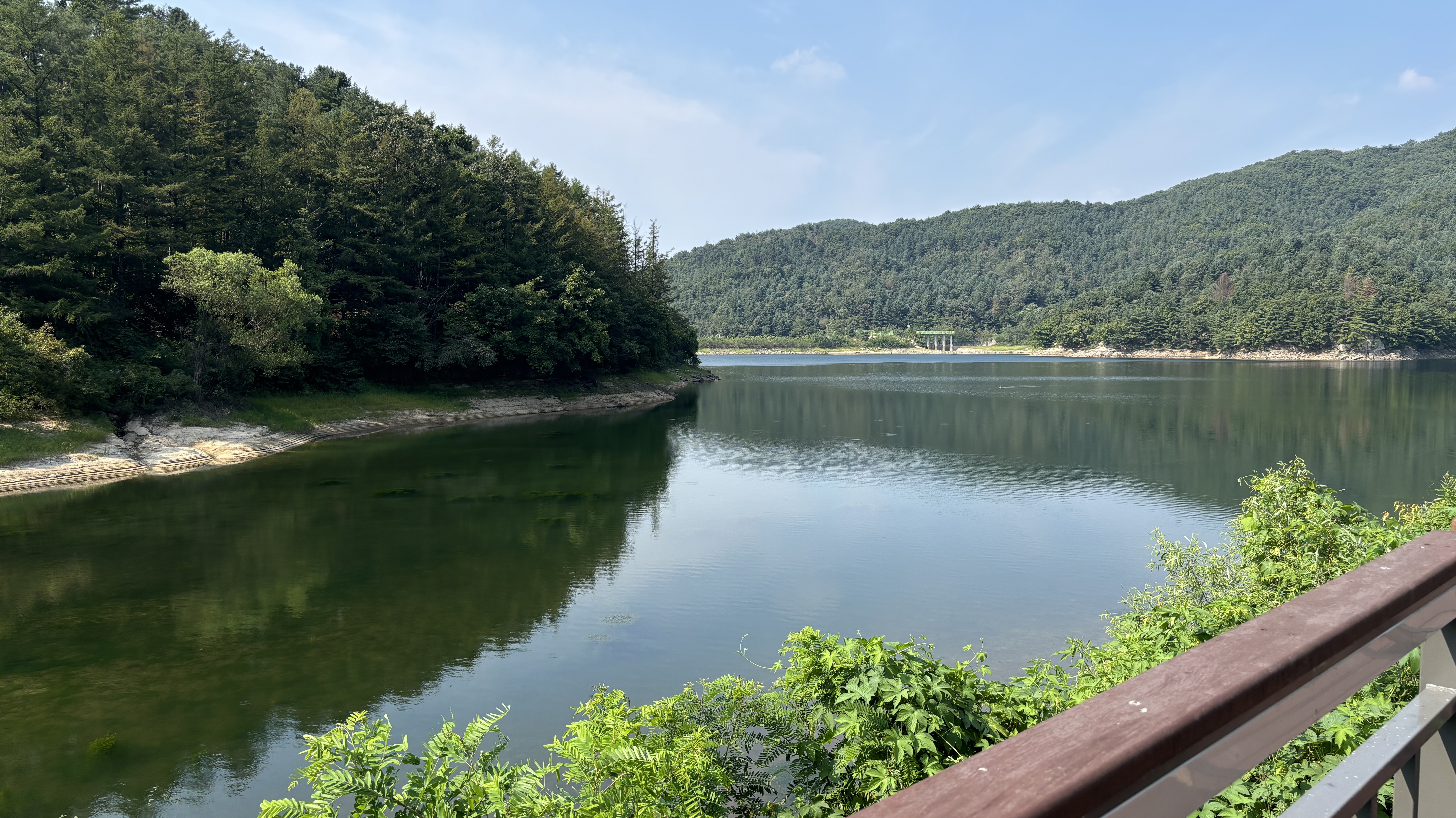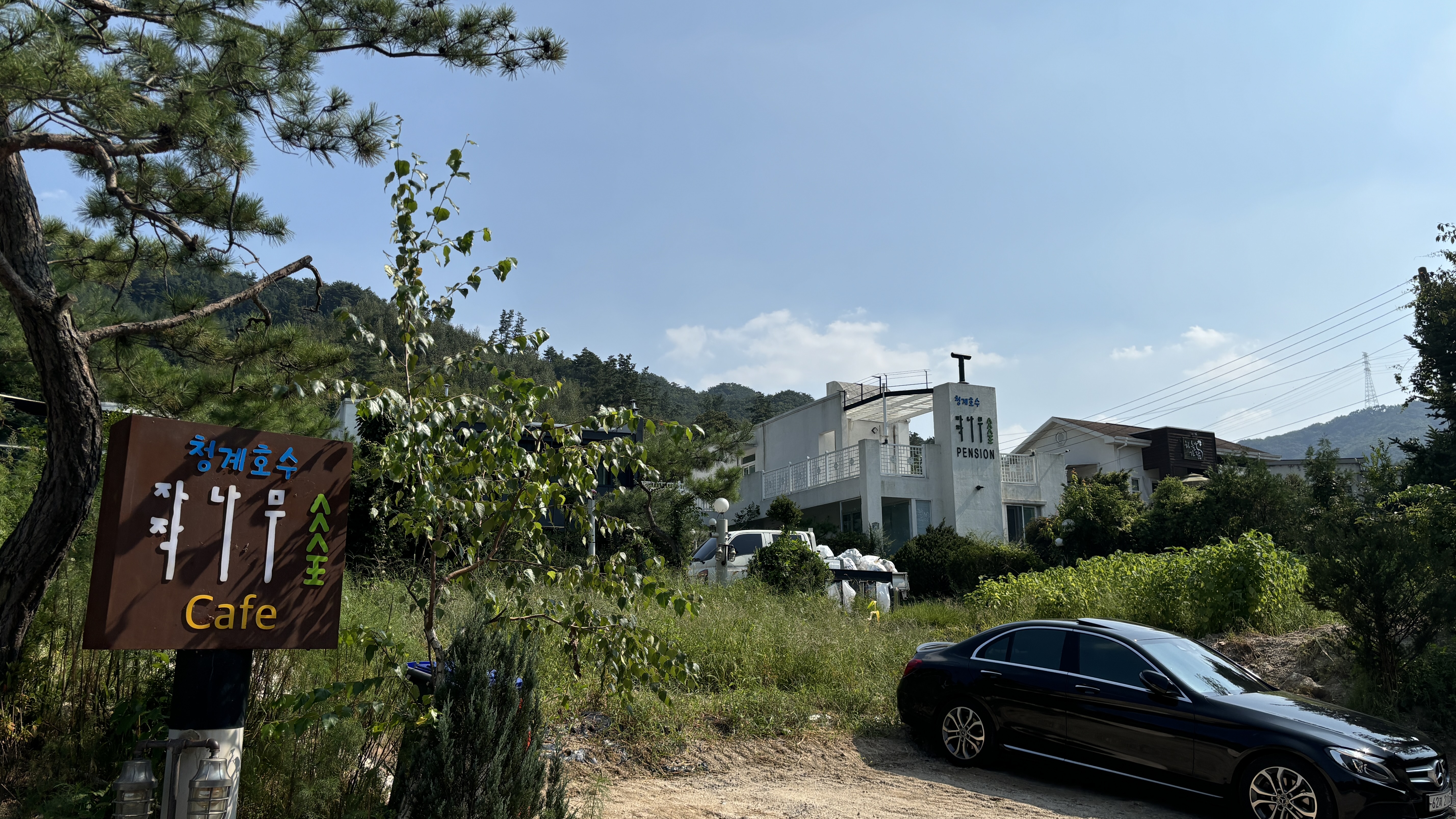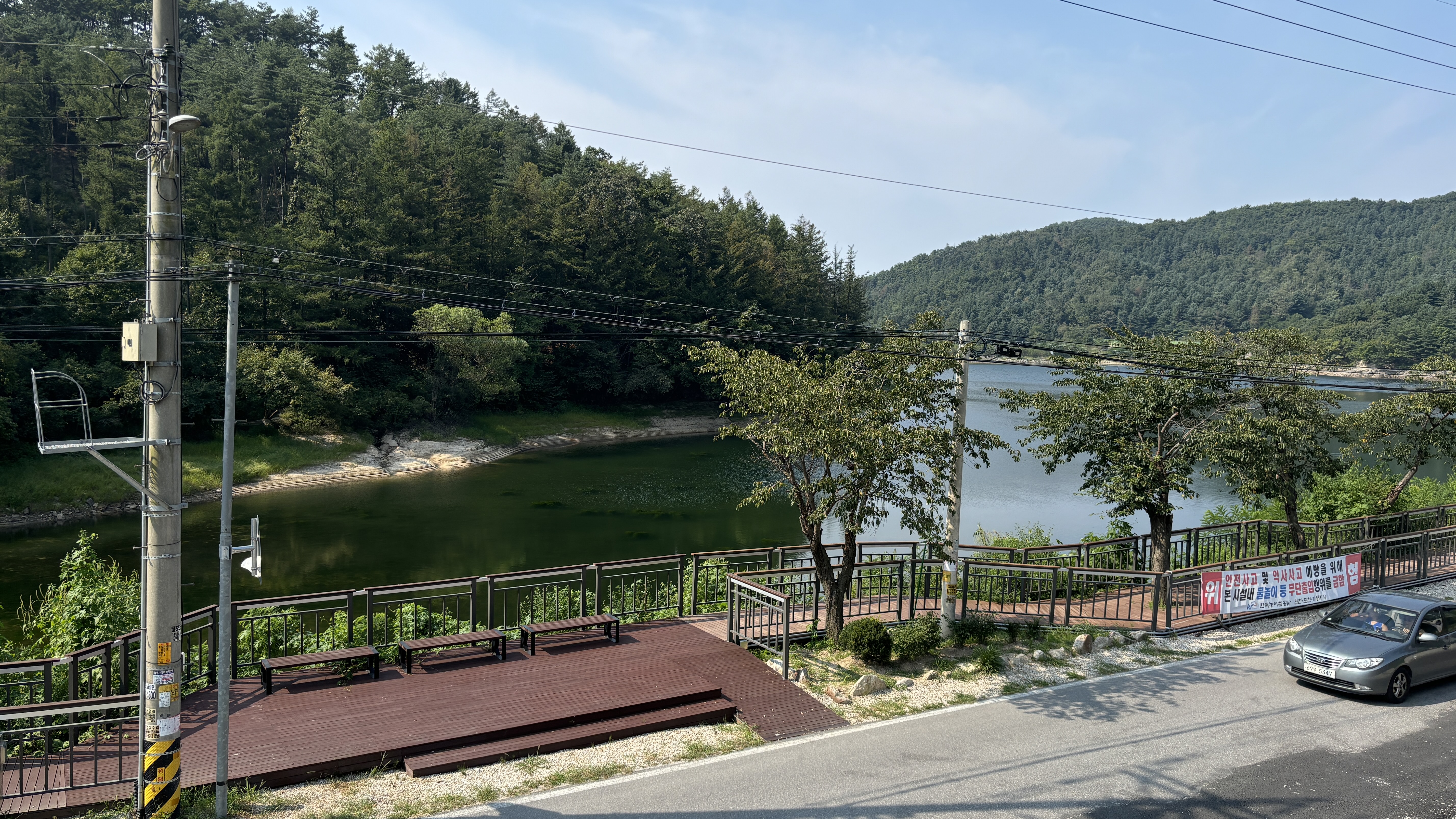 청계호수와 도로를 사이에 두고 호수가 잘 보이는 높은 지대에 위치에 있어 경관이 좋았습니다.