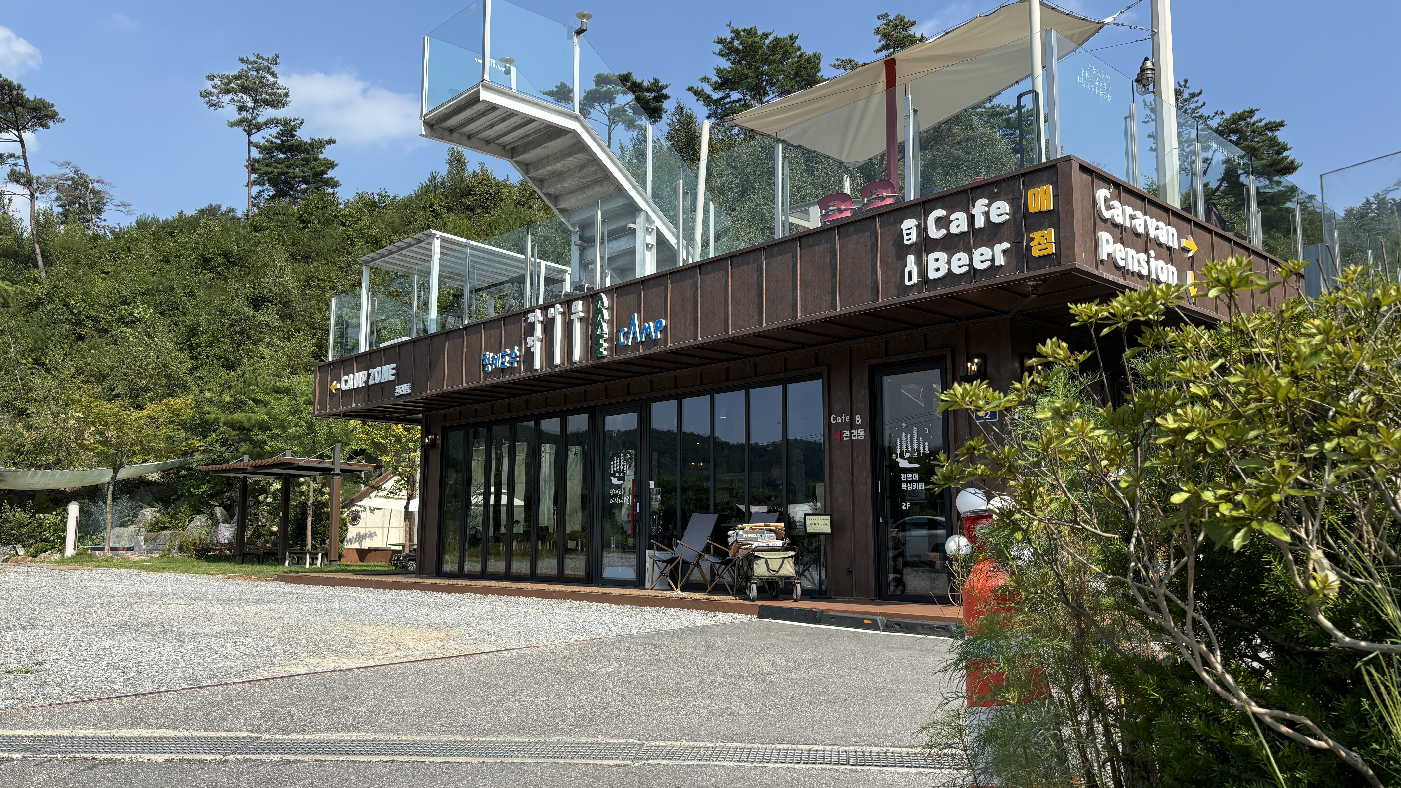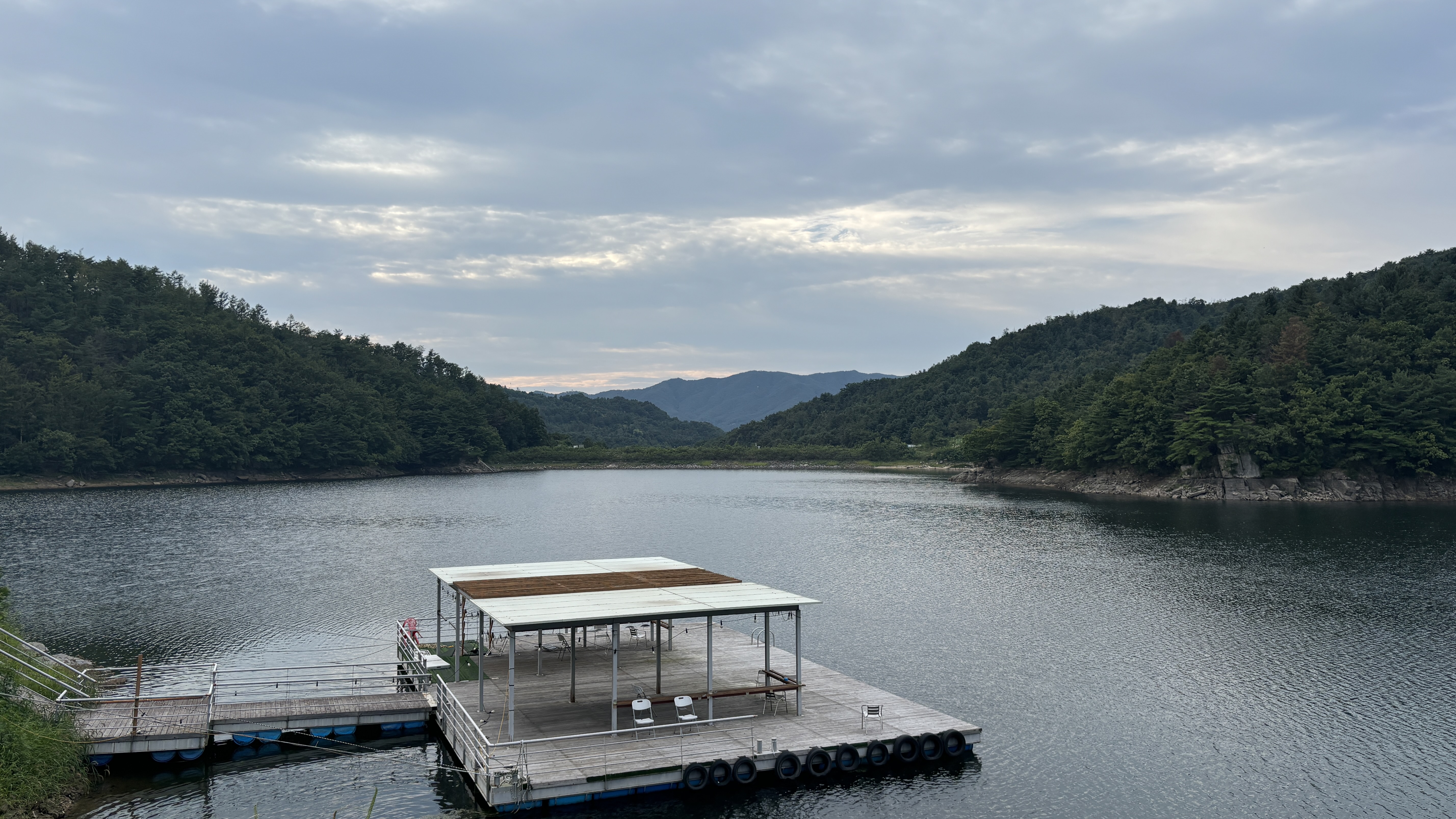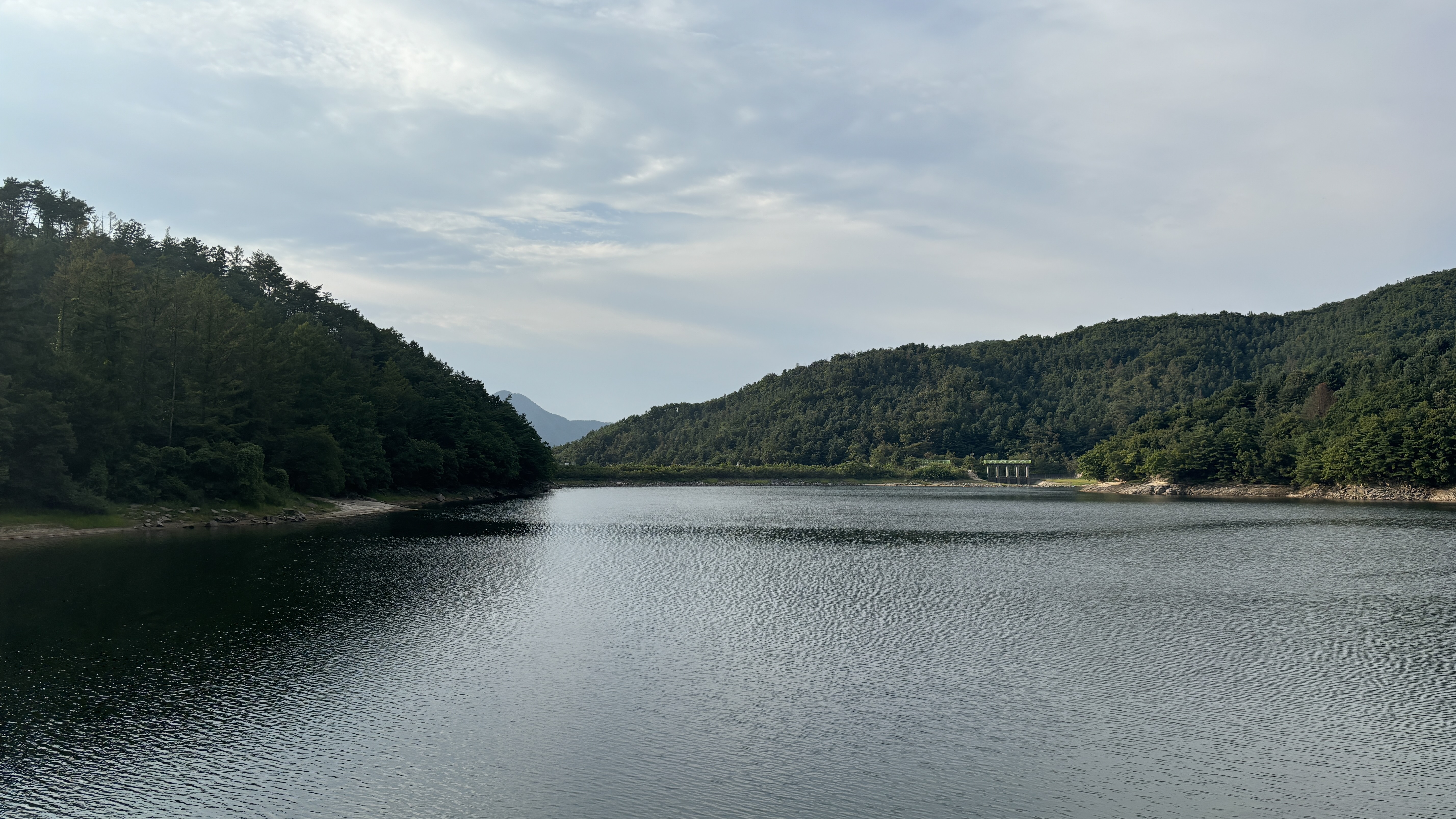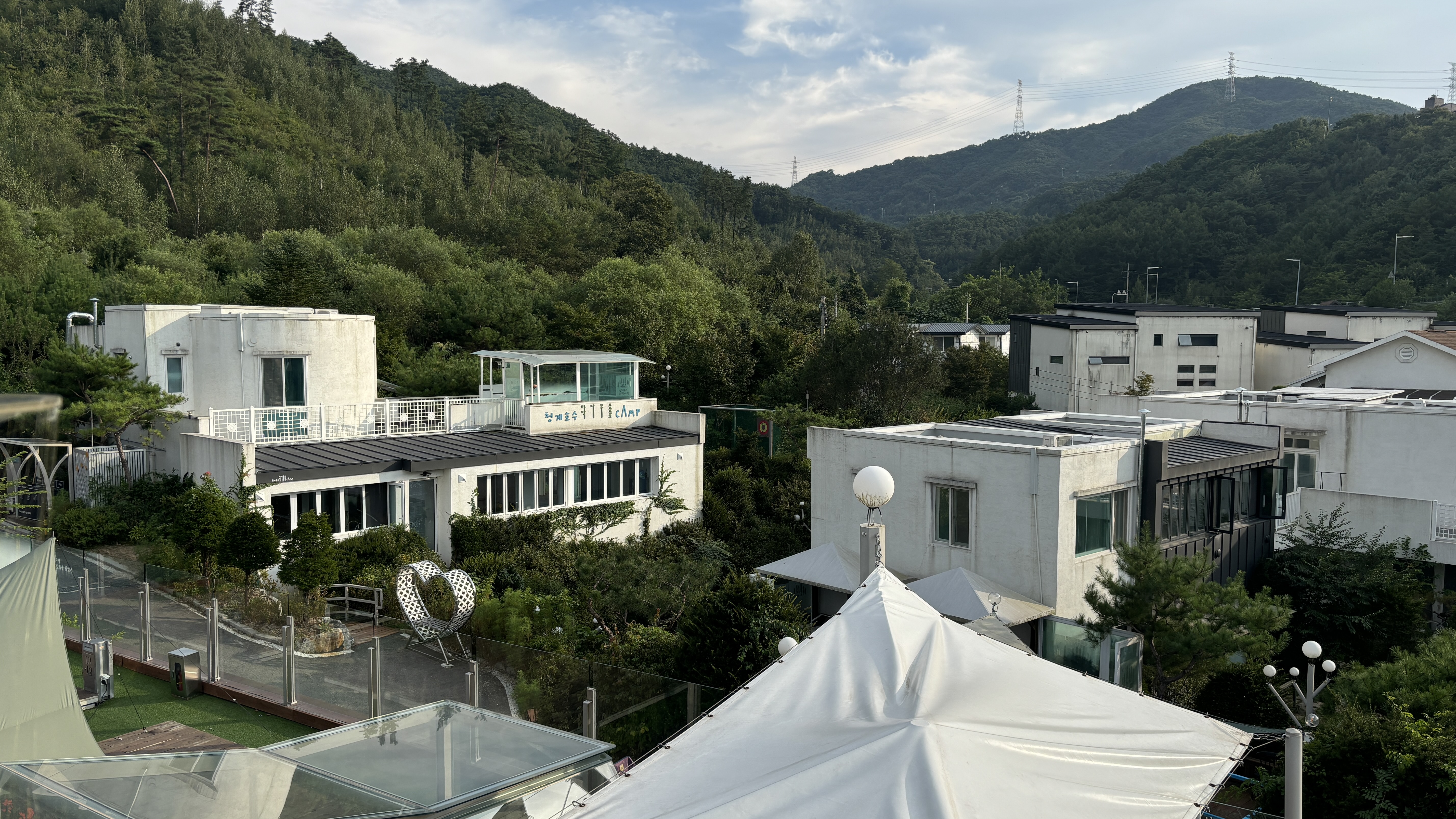 청계호수와 도로를 사이에 두고 호수가 잘 보이는 높은 지대에 위치에 있어 경관이 좋았습니다.