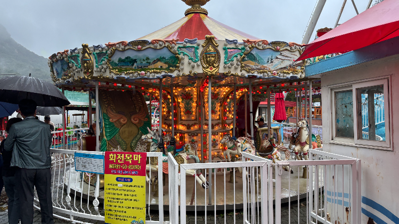 아이들이 탈 수 있는 놀이기구들이 있습니다.