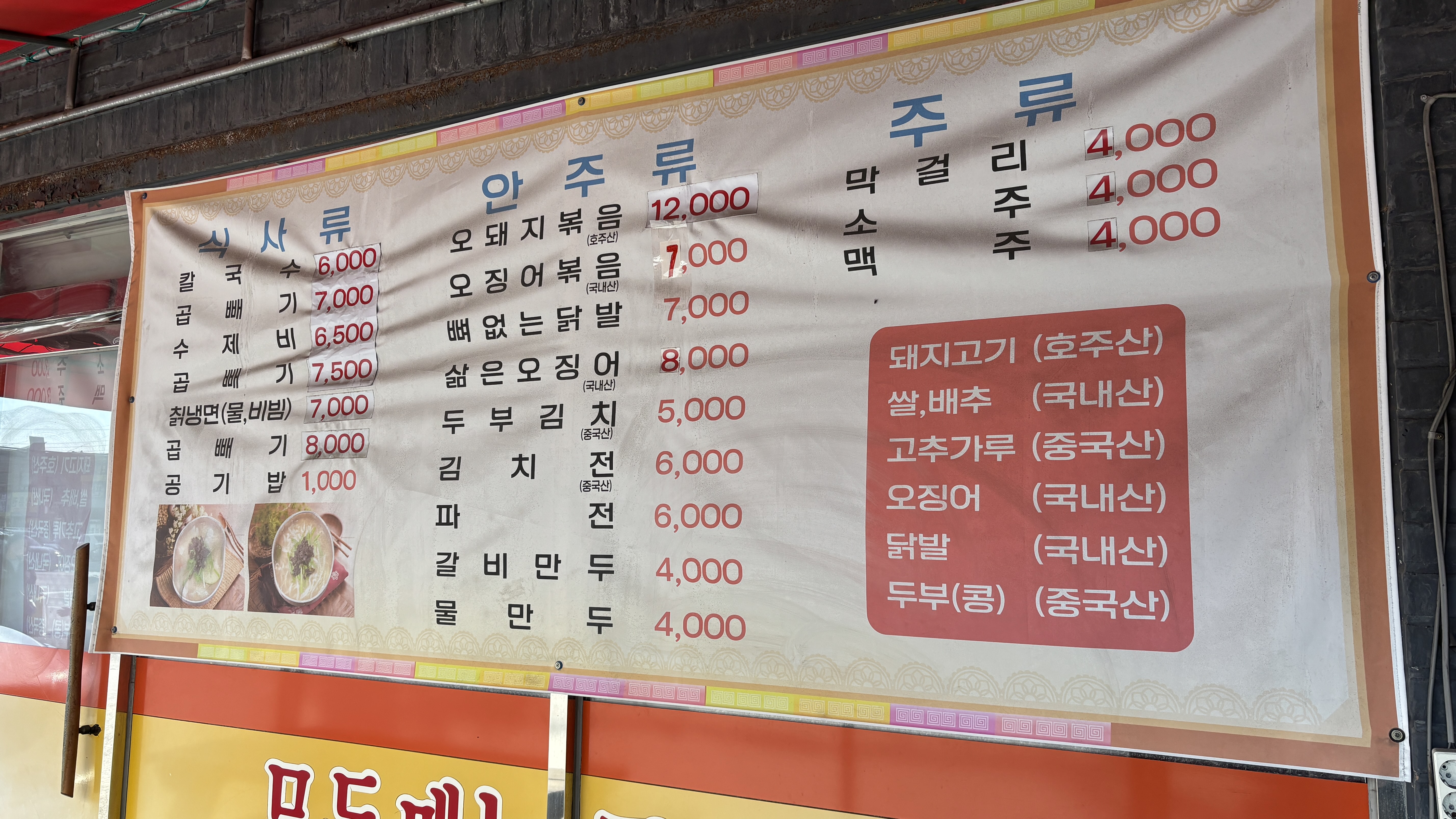 칼국수 가격은 6,000원이고