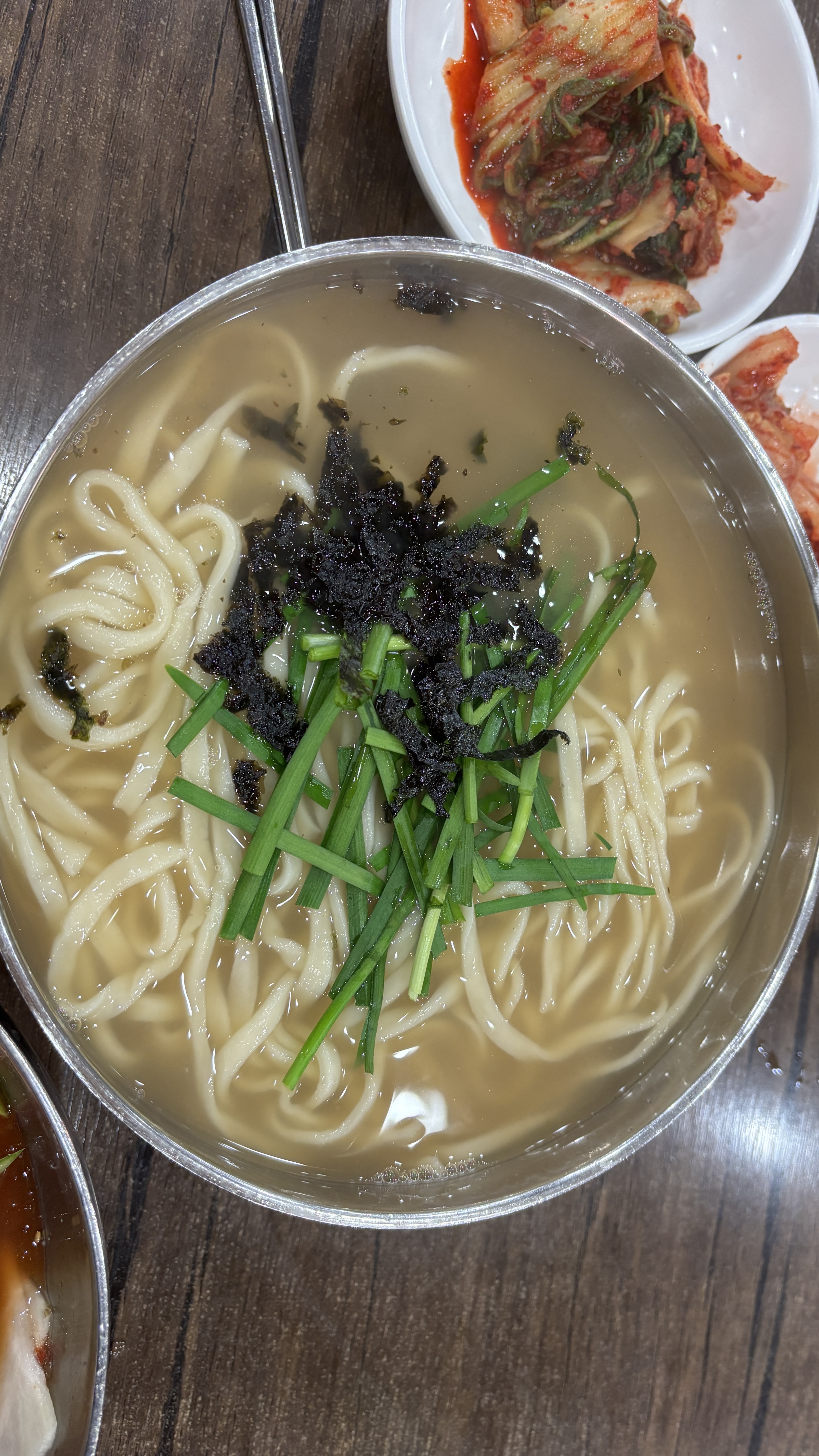 칼국수는 국물, 면, 부추,