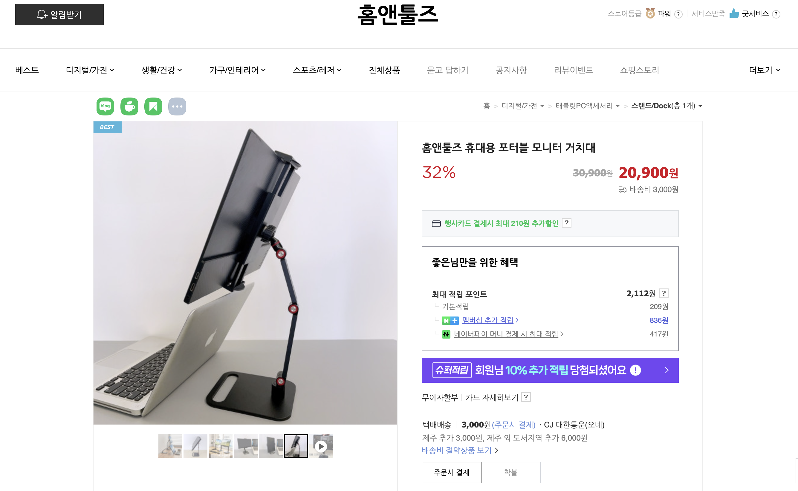 홈앤툴즈에 휴대용 포터블 모니터 거치대이다.