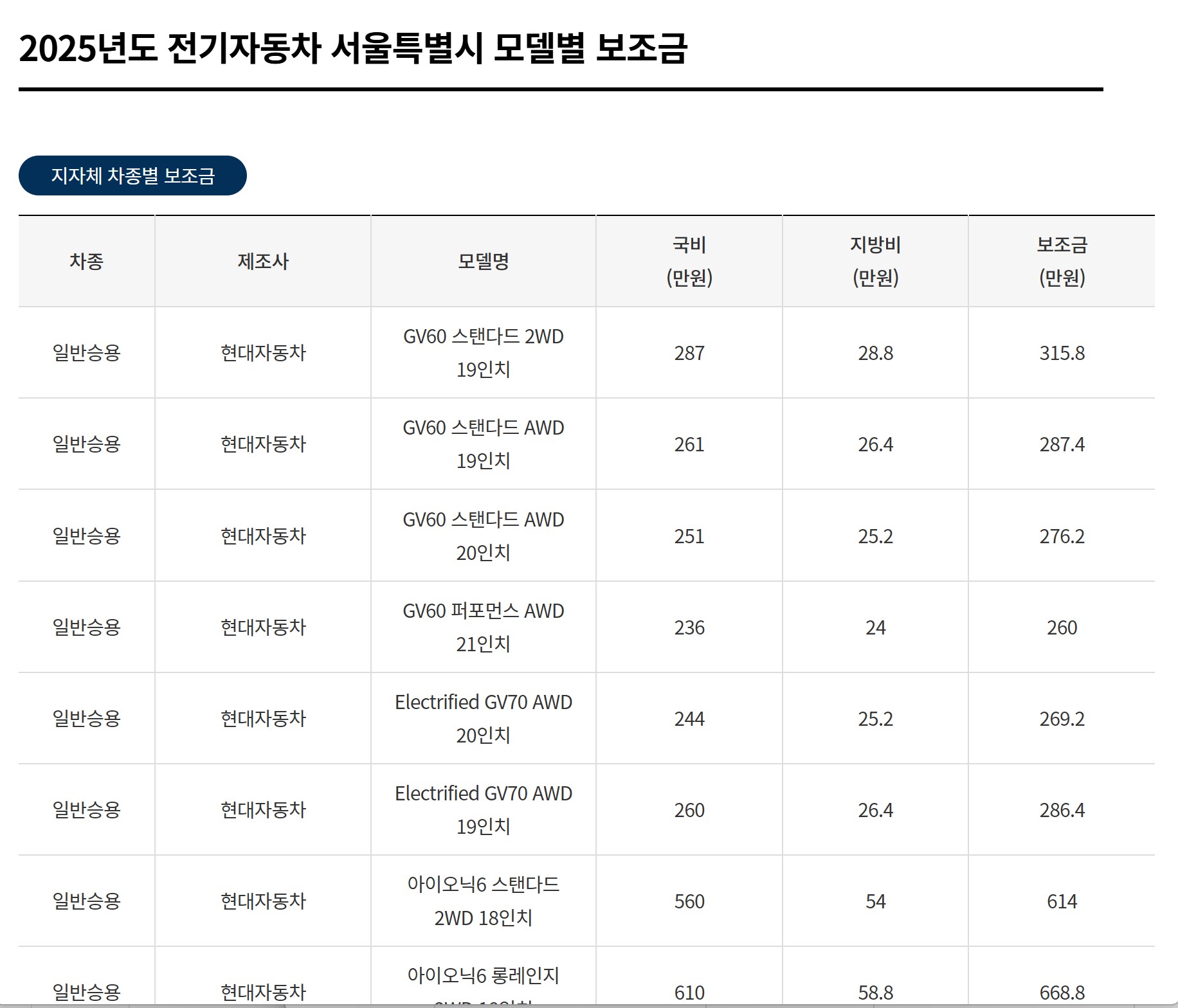 지자체 차종별 보조금으로