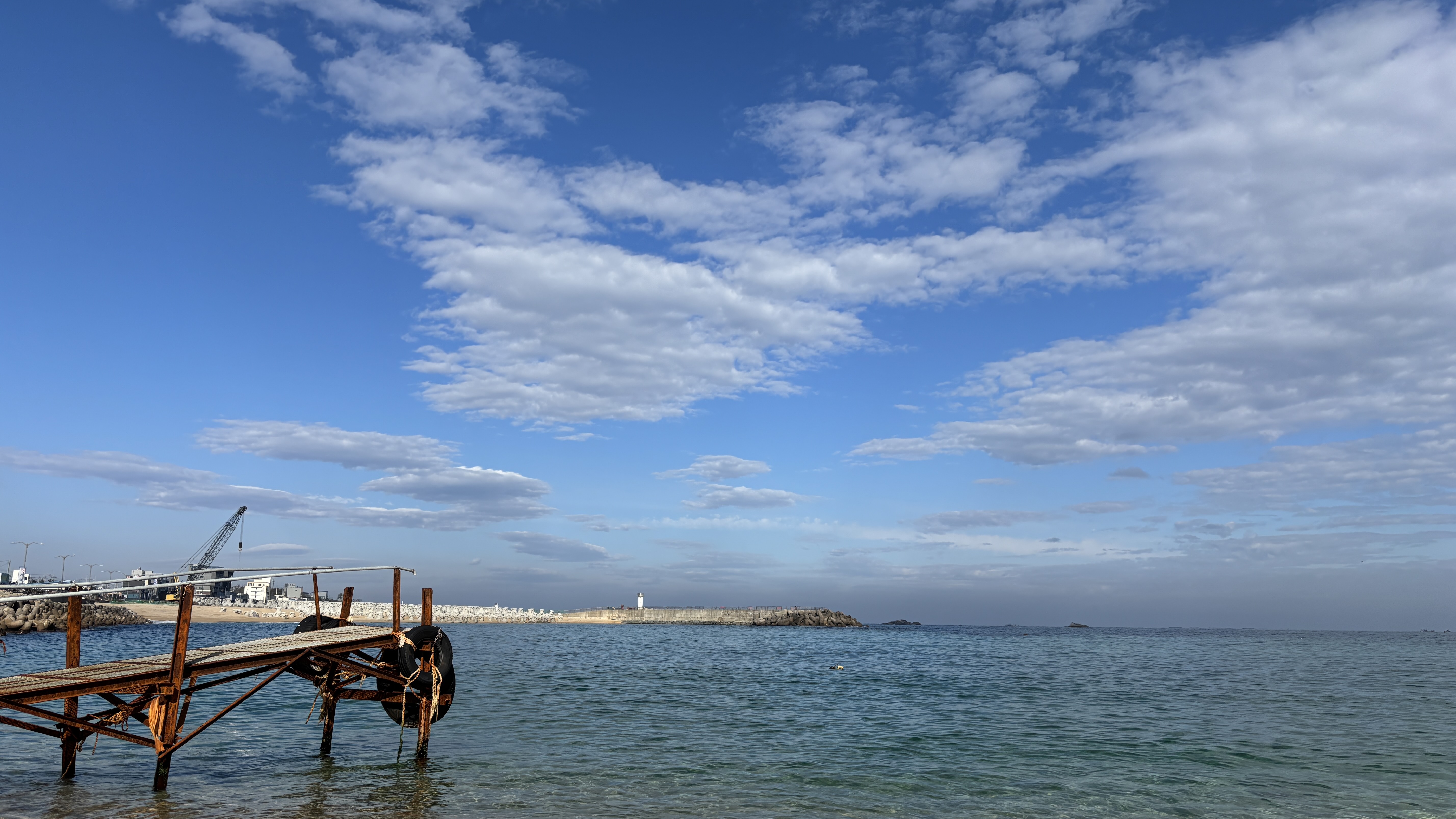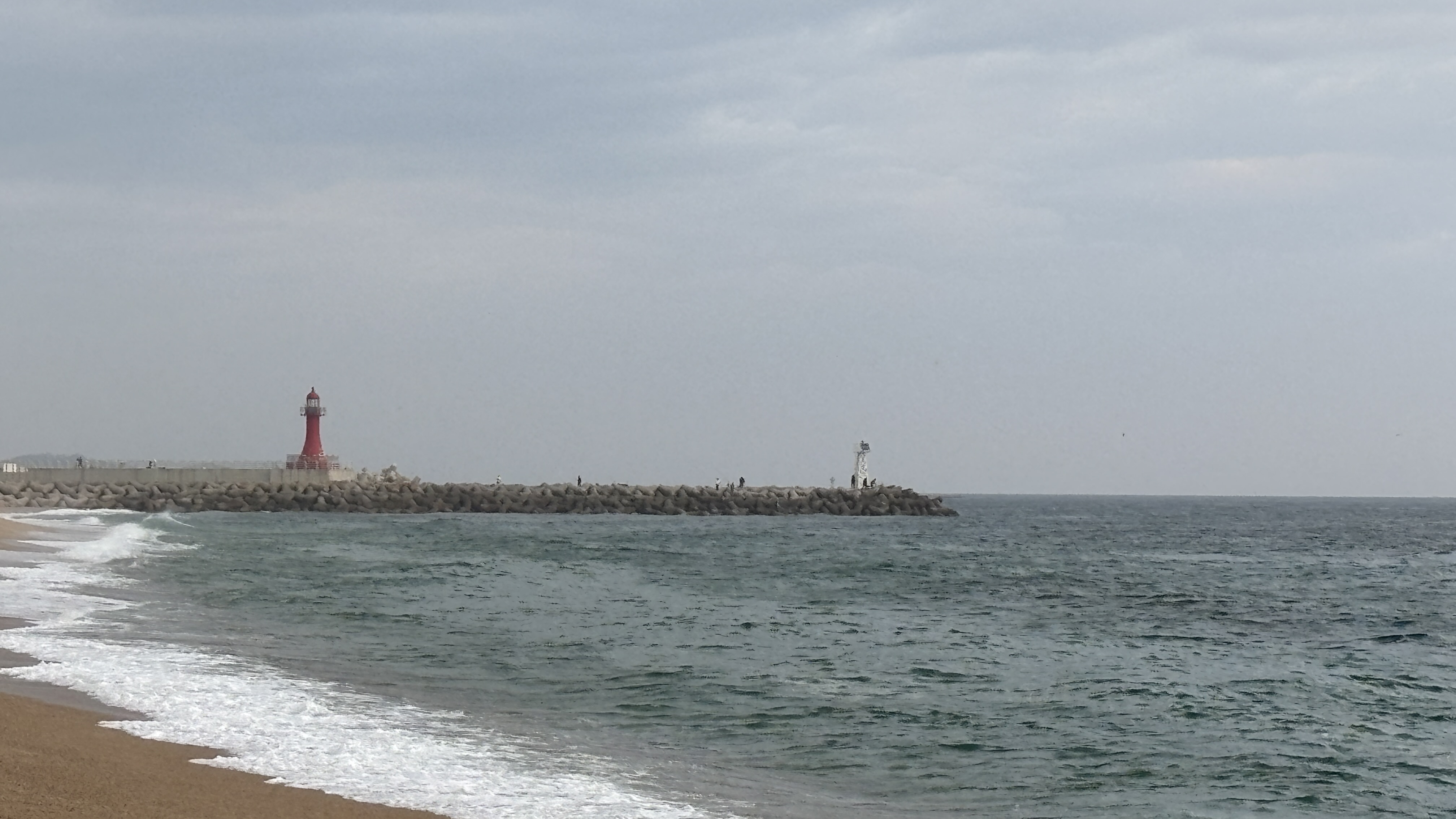 이동하는 중 발견한 등대 해수욕장
