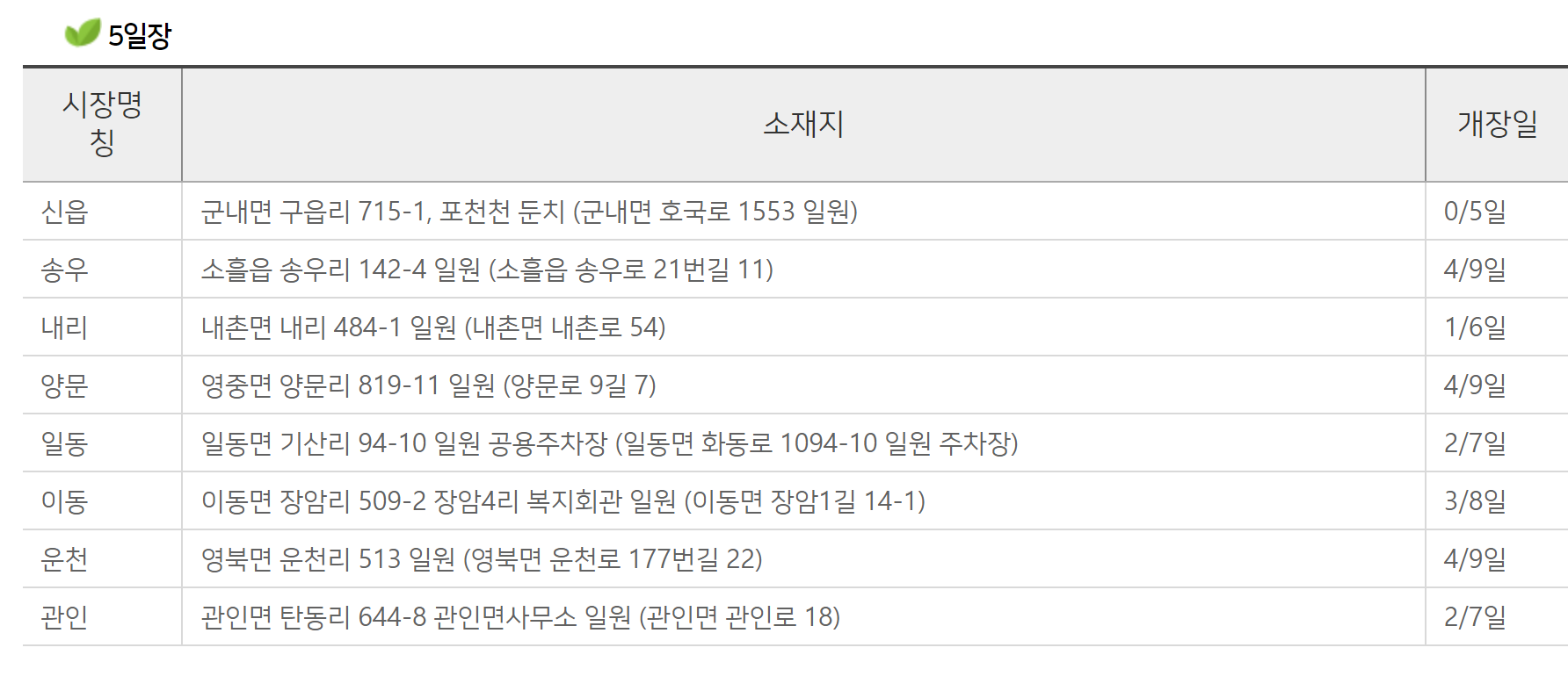 1. 포천 5일장 개장일